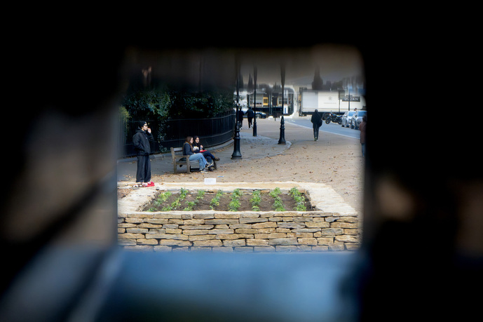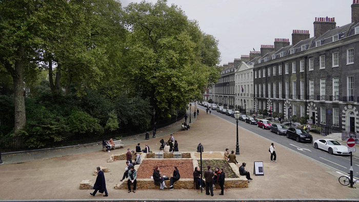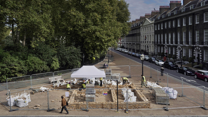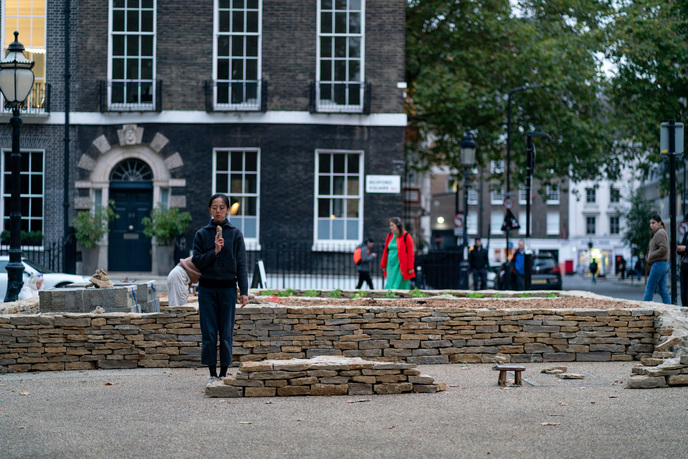 Dry stone house foundation under construction on Bedford Square, London, 2024. Photo © Chen Zhan. Courtesy Jingru (Cyan) Cheng, Chen Zhan, Mengfan Wang and the Architectural Association